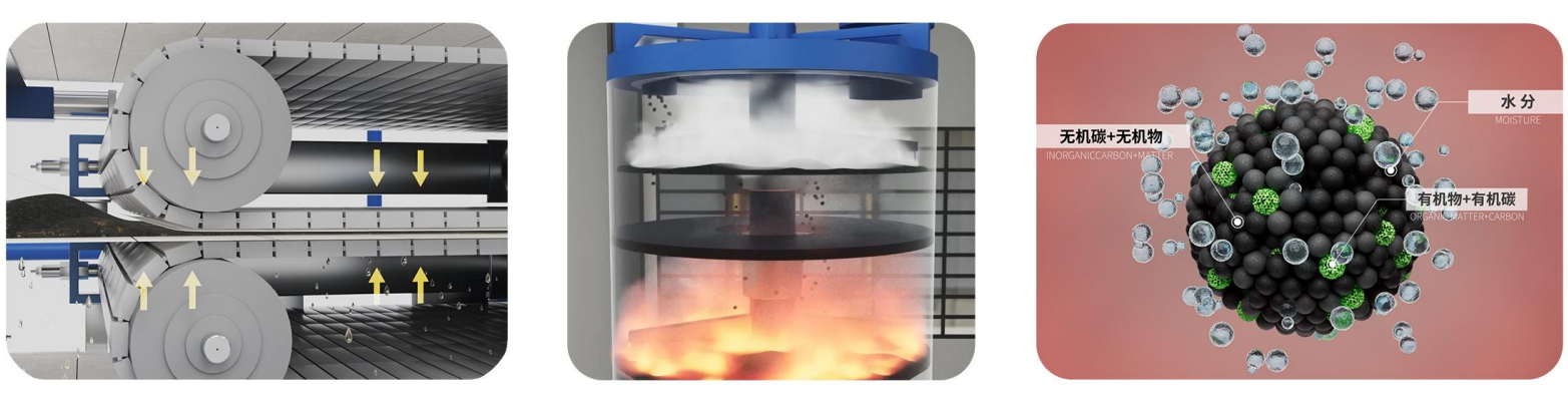 污泥裂解碳化工藝針對包括市政污水處理廠污泥、廚余垃圾、樹枝雜草、稻殼秸稈、一般工業(yè)污泥在內(nèi)的各類固廢,利用貧氧高溫環(huán)境促使污泥等固廢發(fā)生熱解碳化反應(yīng),安全、清潔、節(jié)能,并實現(xiàn)可控比例的“固碳”,極大降低碳排放水平。